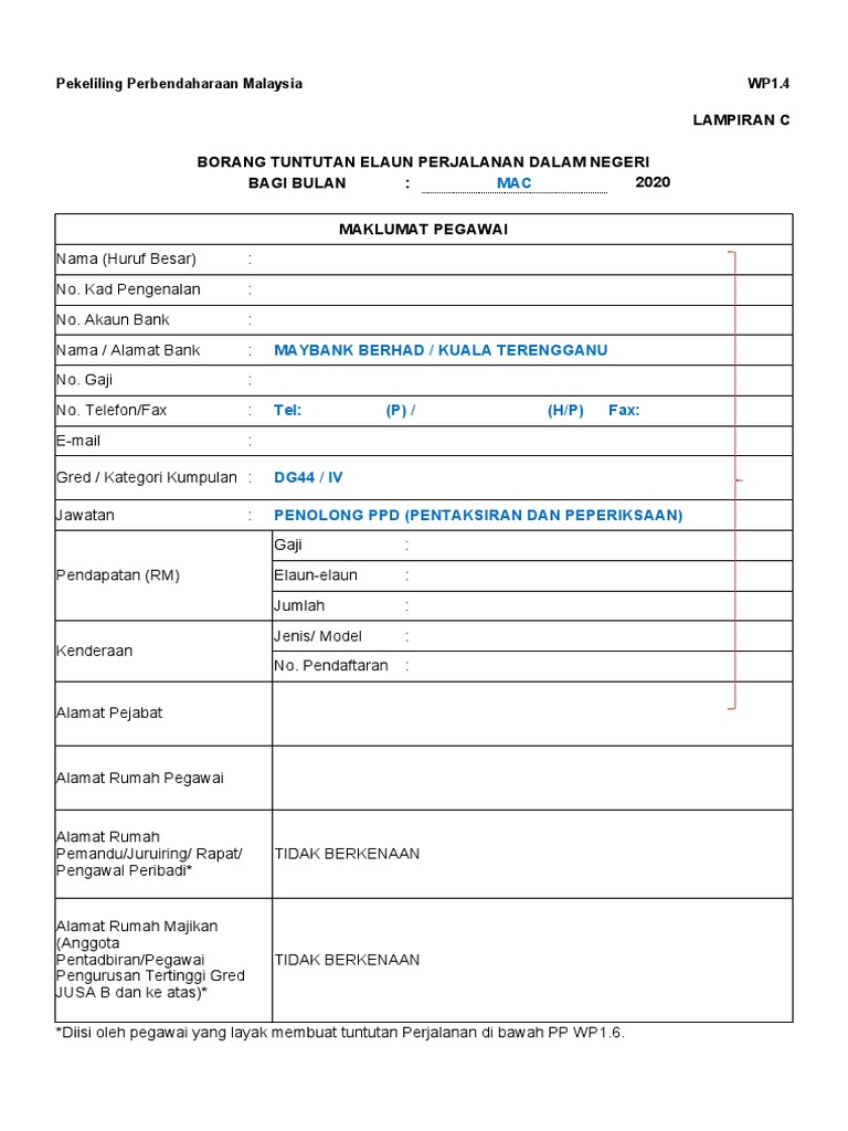 Borang Tuntutan Elaun Perjalanan Wp1.4